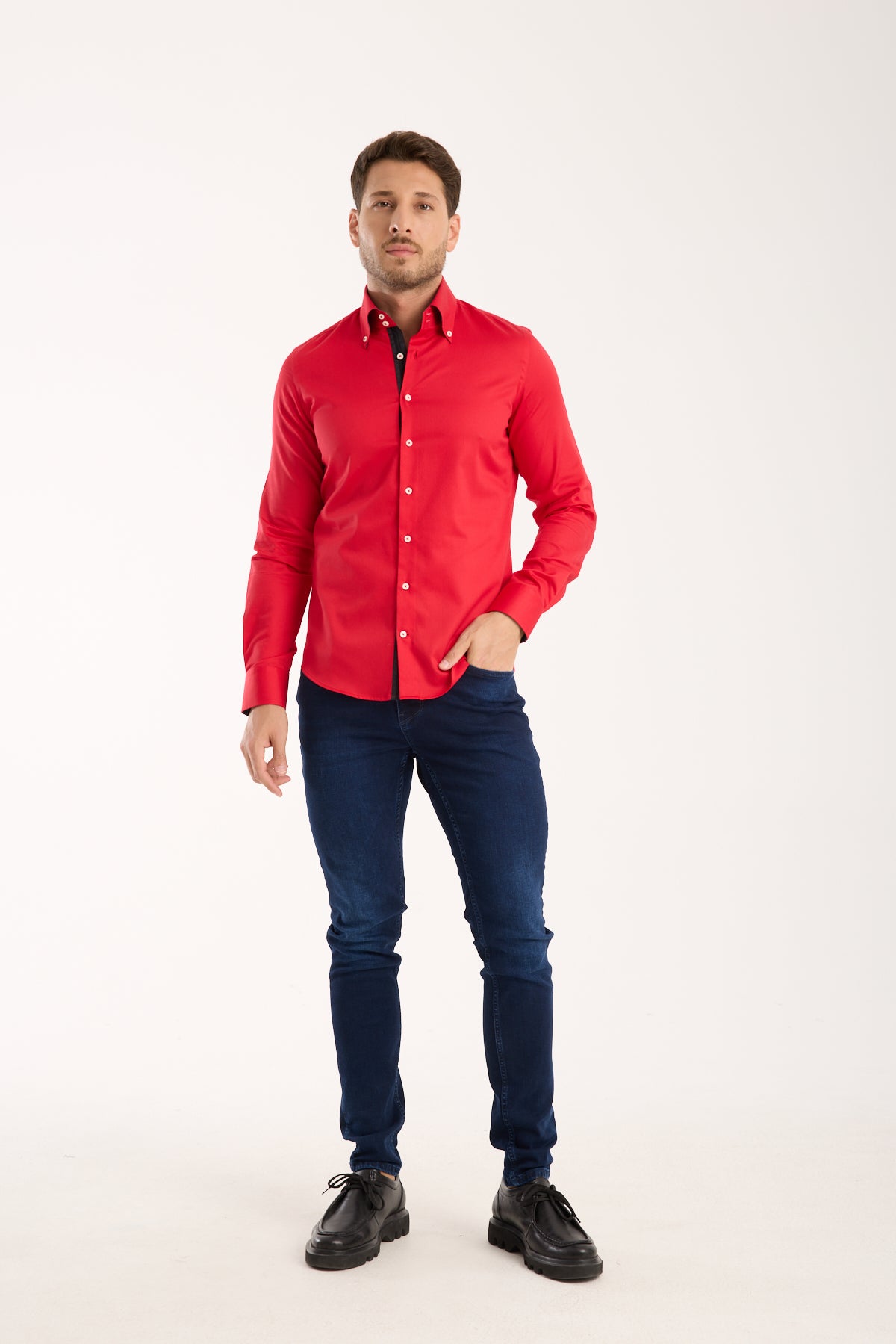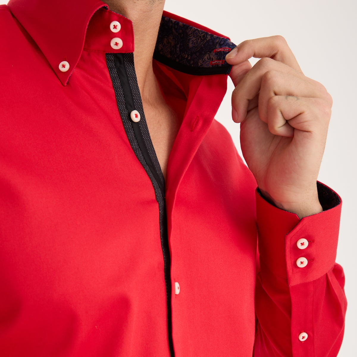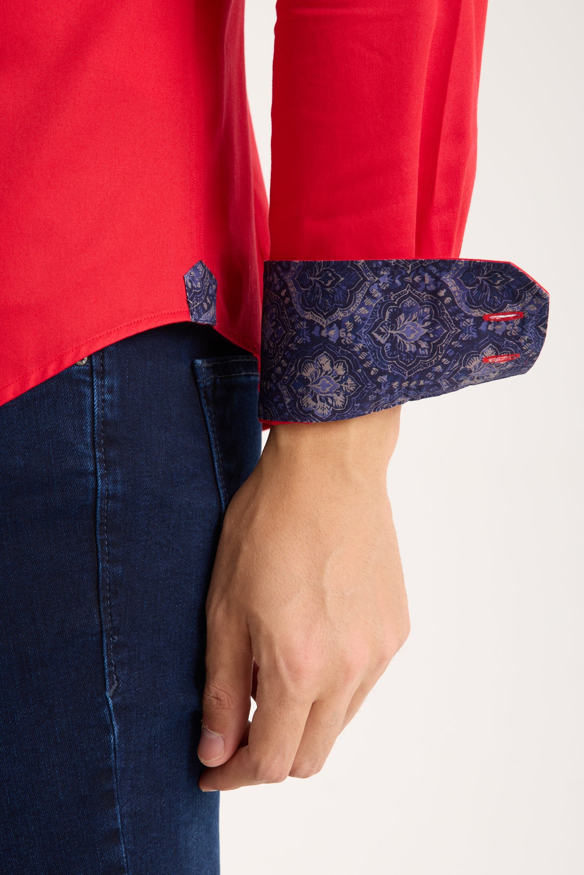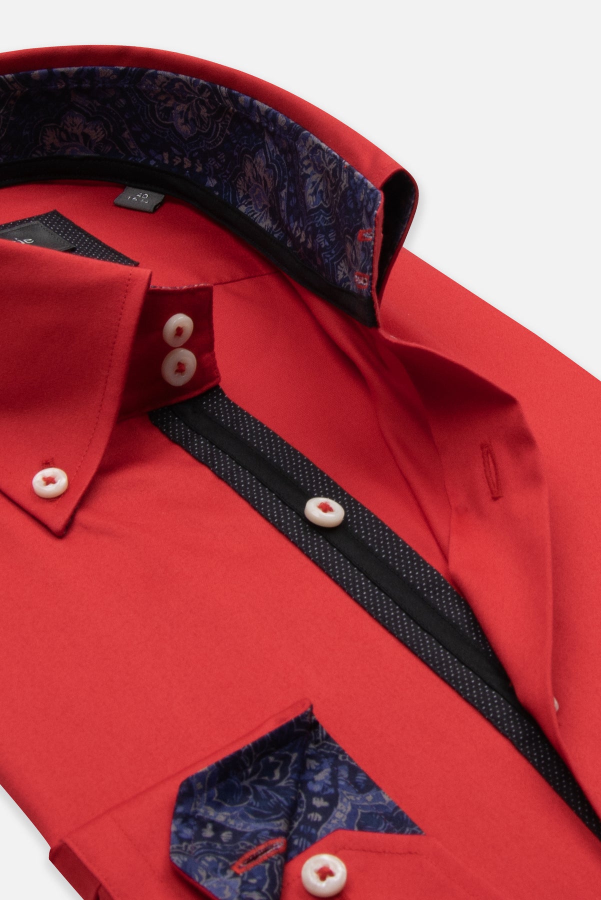 Srajcaiz100% bombažas subtilnimsatin tkanjem, prinaša popolno ravnovesje med drznostjo in eleganco. Njenardeča barvatakoj pritegne pogled, medtem kočrni detajli na notranji strani gumbnicinorientalski vzorec v ovratniku ter manšetahdodajo poseben, unikaten karakter.Slim fit krojposkrbi za popolno silhueto, dolgi rokavi pa omogočajo vsestransko nošenje – od poslovnih sestankov do večernih izhodov ali posebnih priložnosti. Kos, ki združuje moderen slog, samozavest in subtilne detajle, ki naredijo vsak outfit izstopajoč.