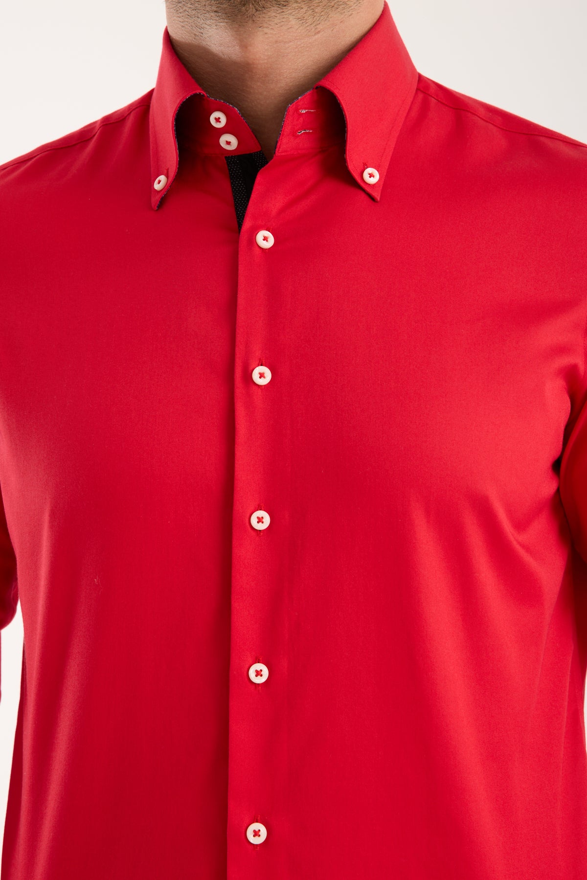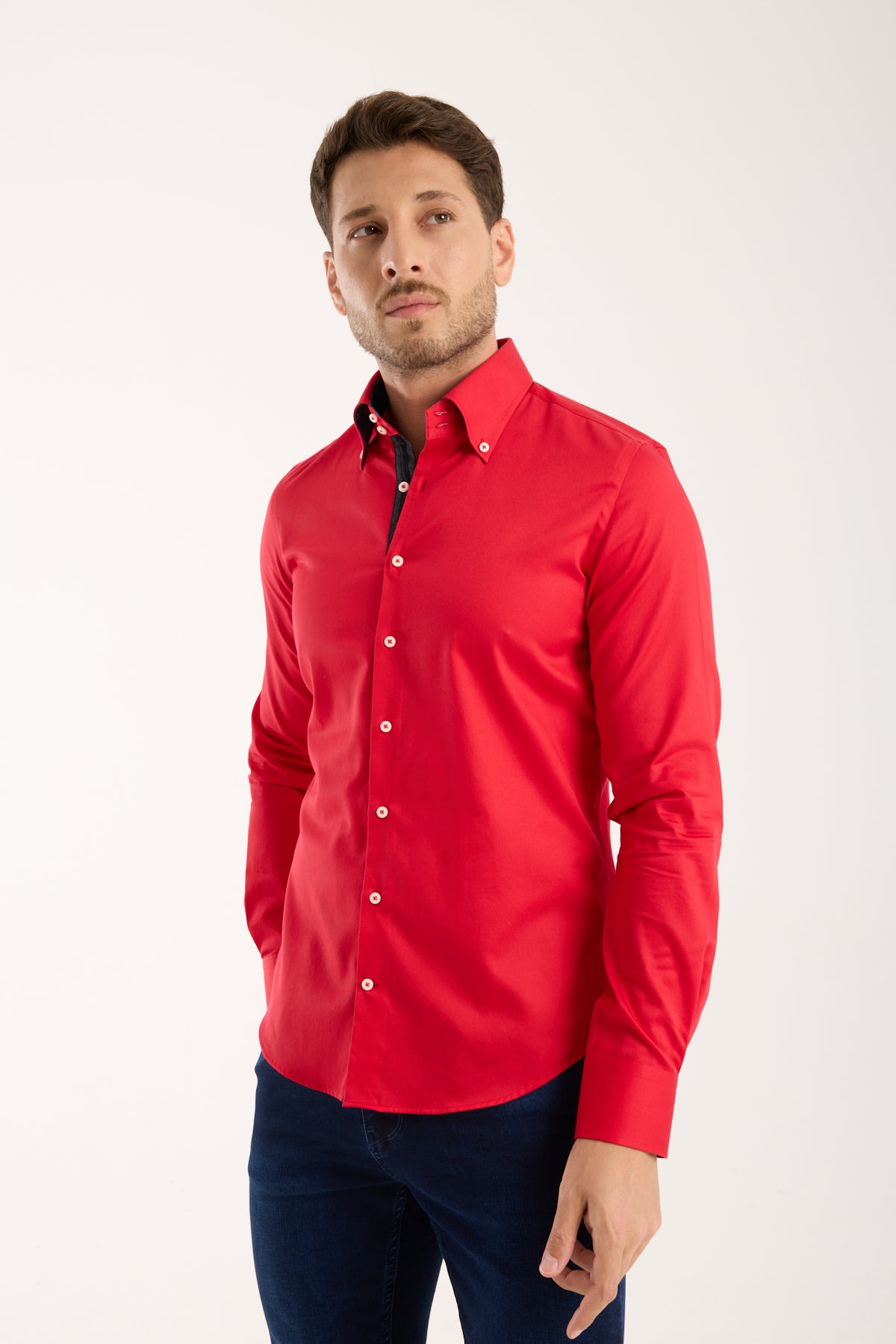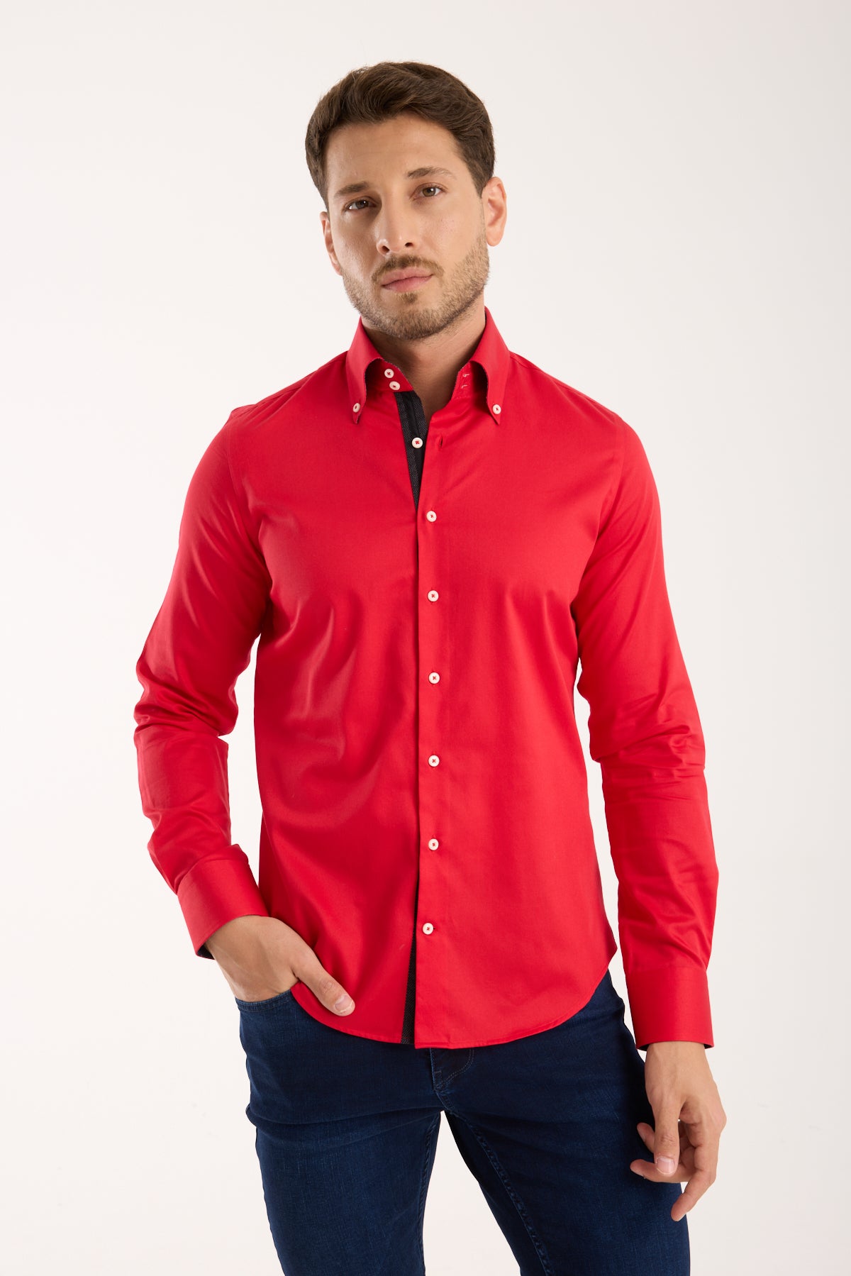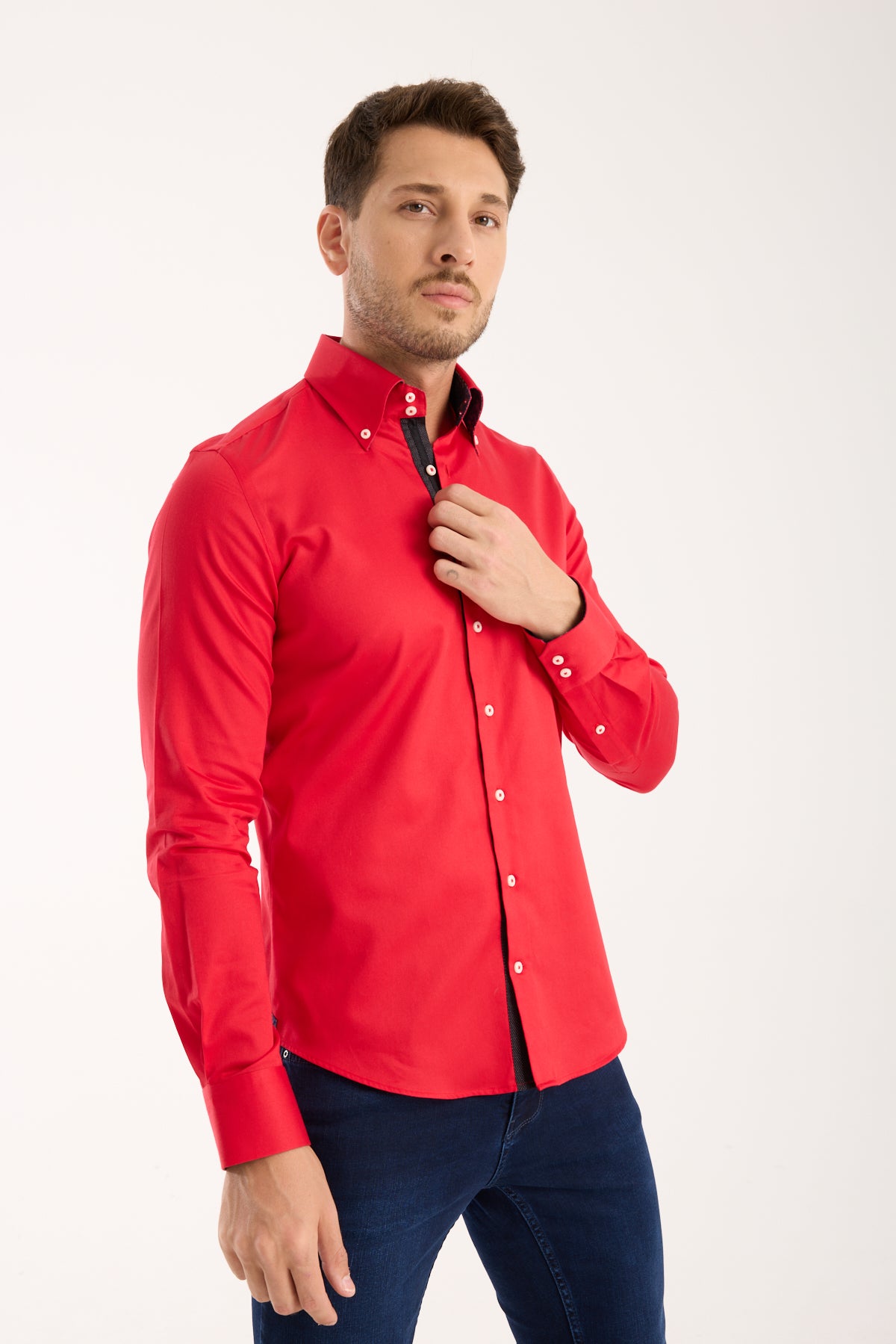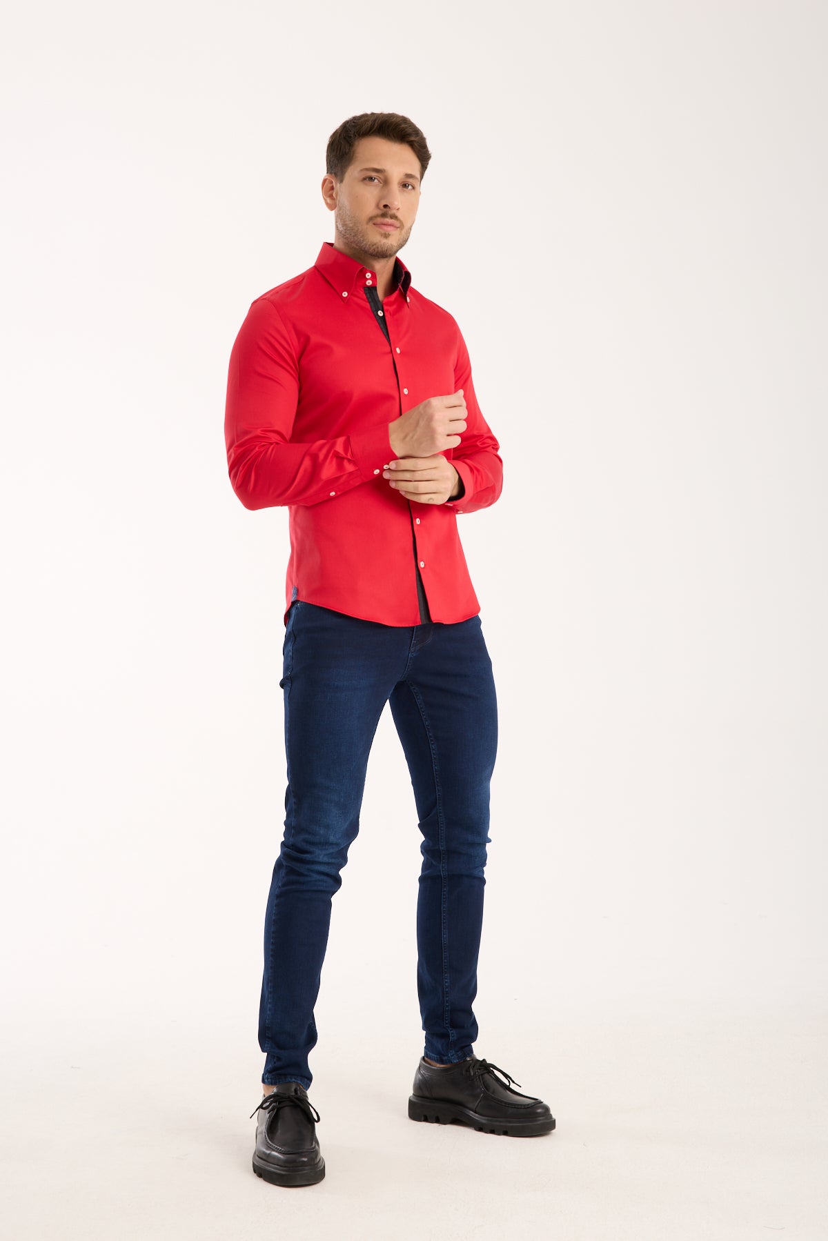 Srajcaiz100% bombažas subtilnimsatin tkanjem, prinaša popolno ravnovesje med drznostjo in eleganco. Njenardeča barvatakoj pritegne pogled, medtem kočrni detajli na notranji strani gumbnicinorientalski vzorec v ovratniku ter manšetahdodajo poseben, unikaten karakter.Slim fit krojposkrbi za popolno silhueto, dolgi rokavi pa omogočajo vsestransko nošenje – od poslovnih sestankov do večernih izhodov ali posebnih priložnosti. Kos, ki združuje moderen slog, samozavest in subtilne detajle, ki naredijo vsak outfit izstopajoč.