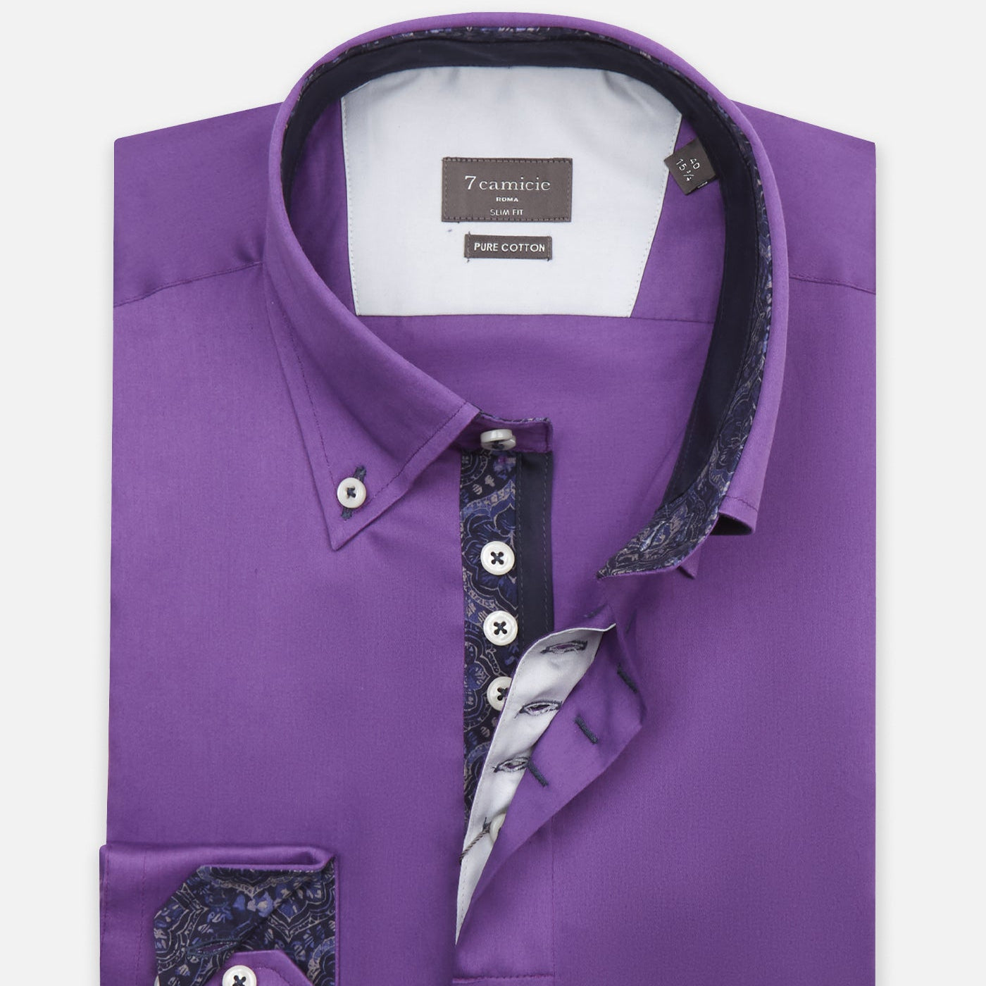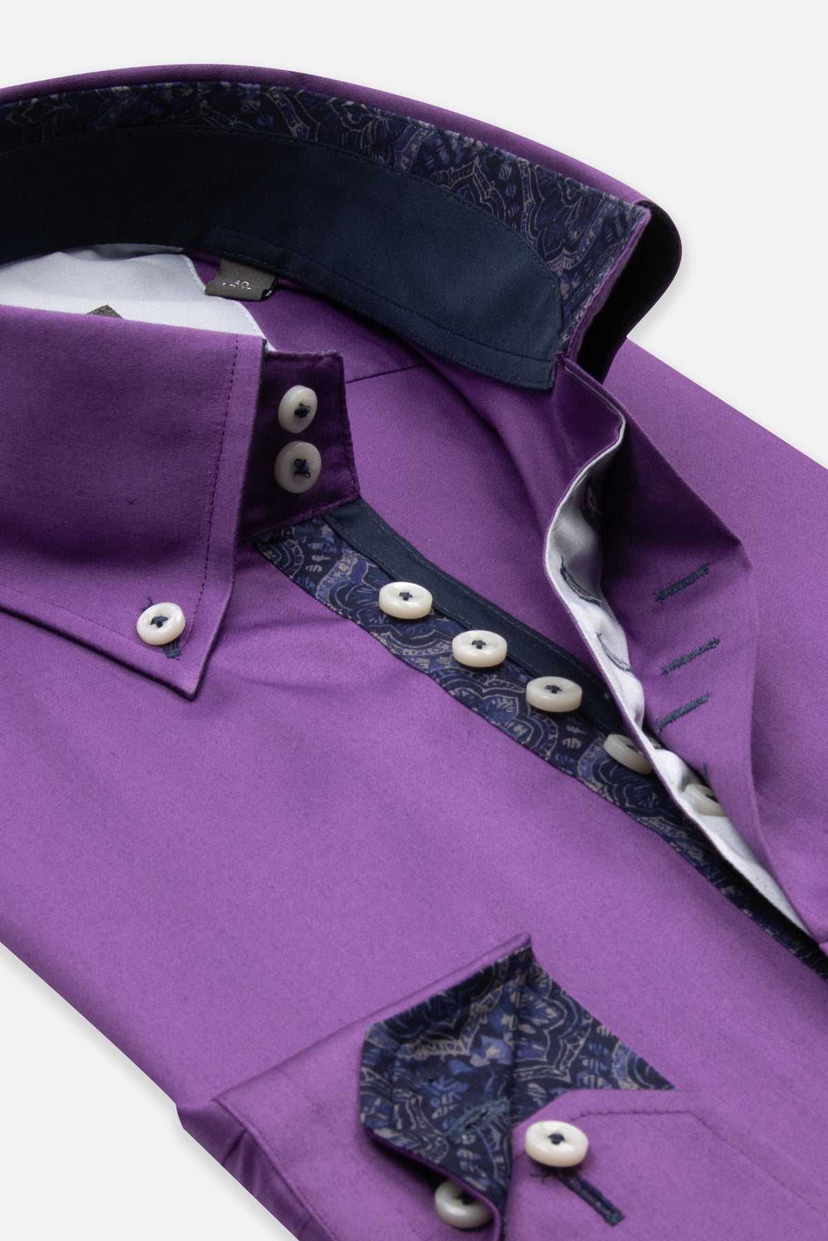 Srajca iz kakovostnega 100% bombaža z rahlo svetlečim satin tkanjem je popolna izbira za moške, ki želijo združiti eleganco in sodoben slog. Njena vijolična barva z detajli temno modre barve in igrivim vzorcem v ovratniku ter na notranji strani manšet doda prefinjen, a svež videz. Slim fit kroj se odlično prilega, dolgi rokavi pa omogočajo, da srajco enostavno kombinirate tako za formalne priložnosti, sproščene dnevne trenutke kot tudi za zabave, kjer želite izstopati s stilom.