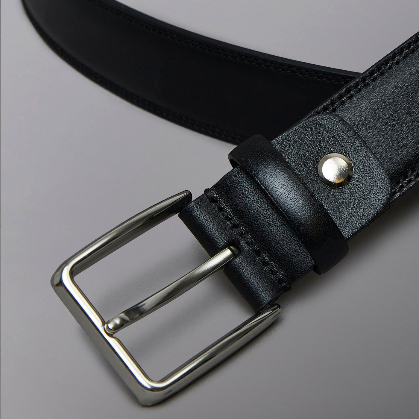 Moški usnjen pas s kovinsko zaponko.