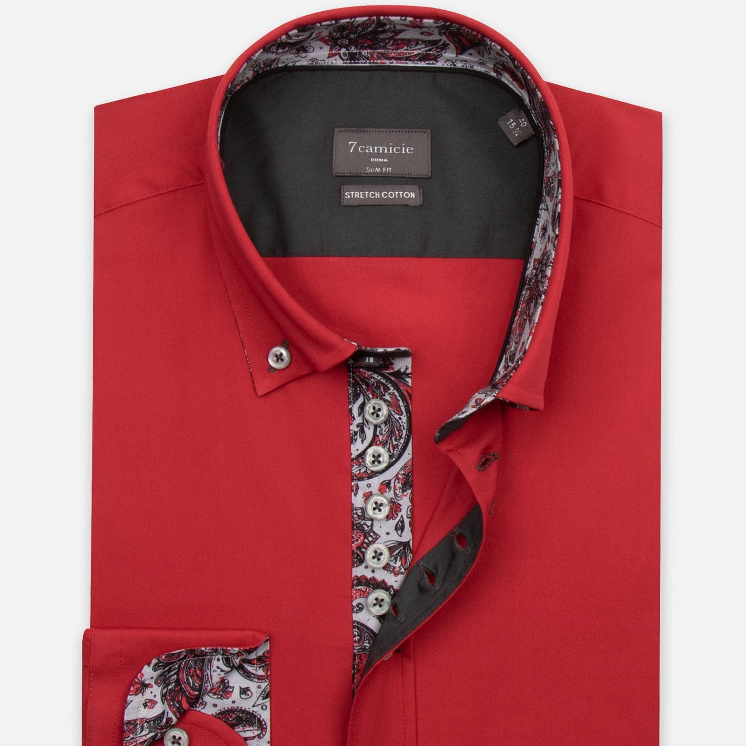 Posebnost srajce je živo rdeča barva, ki takoj pritegne pogled, ter subtilni paisley vzorec v notranjosti ovratnika, na gumbnicah in manšetah, ki doda prefinjen in moderen detajl. Ta kombinacija ustvarja srajco, ki izstopa brez pretirane vpadljivosti in ji daje edinstven značaj.