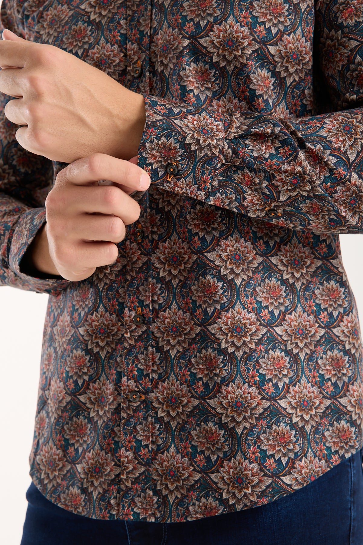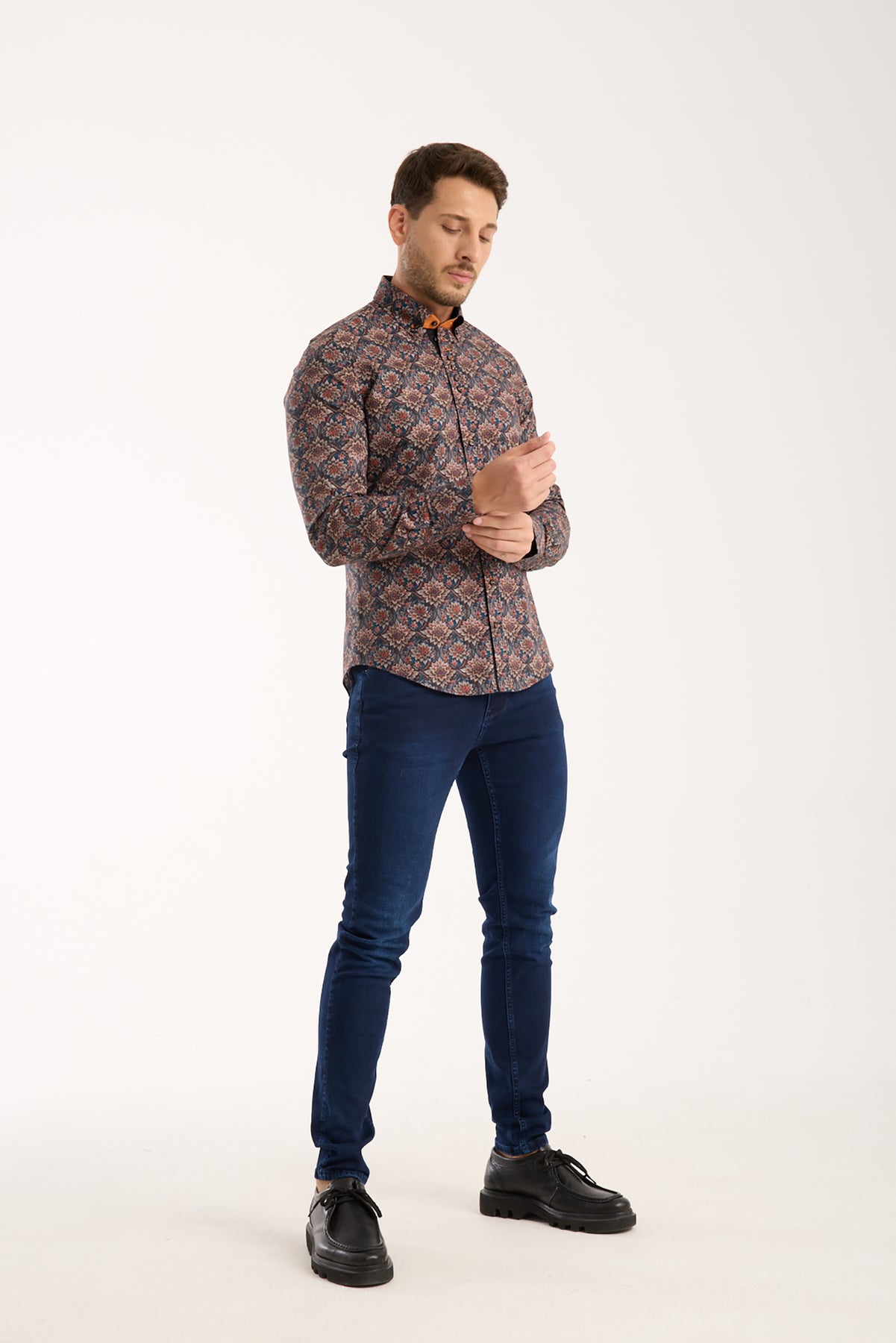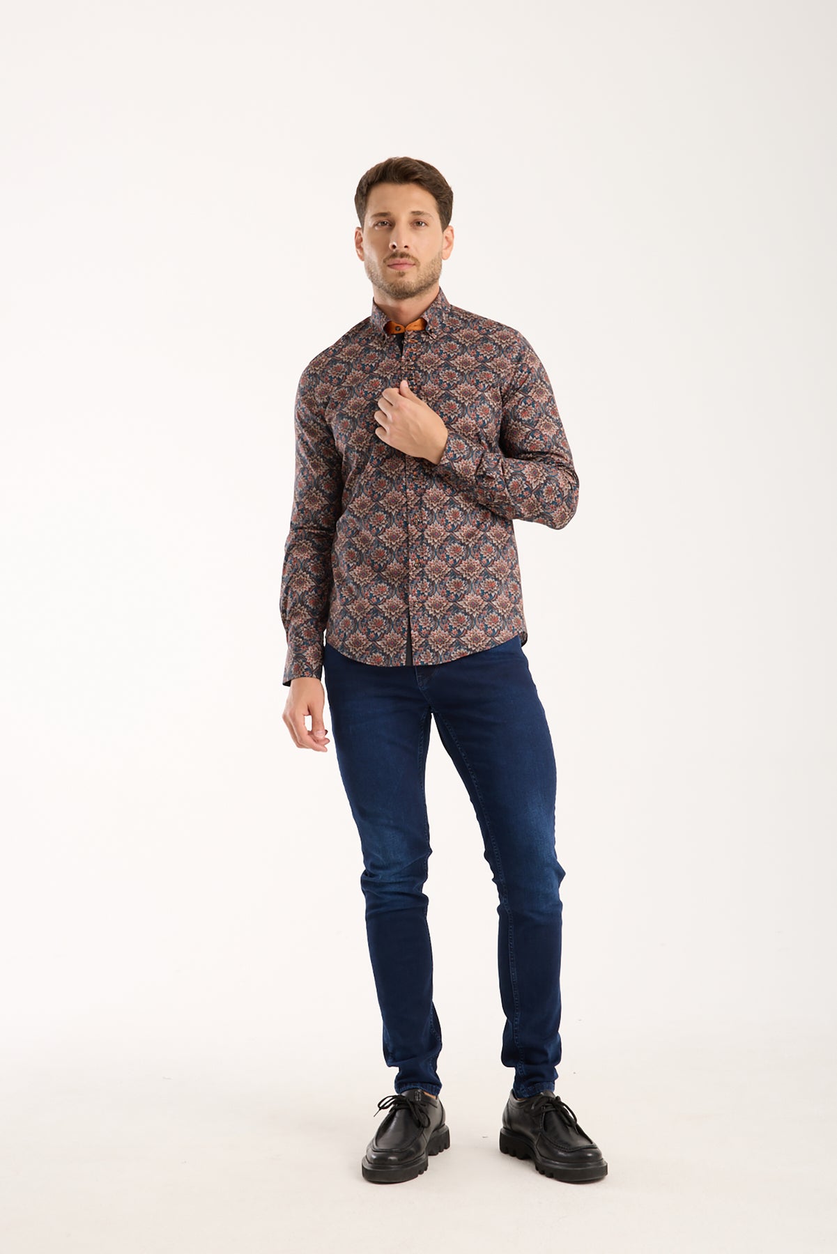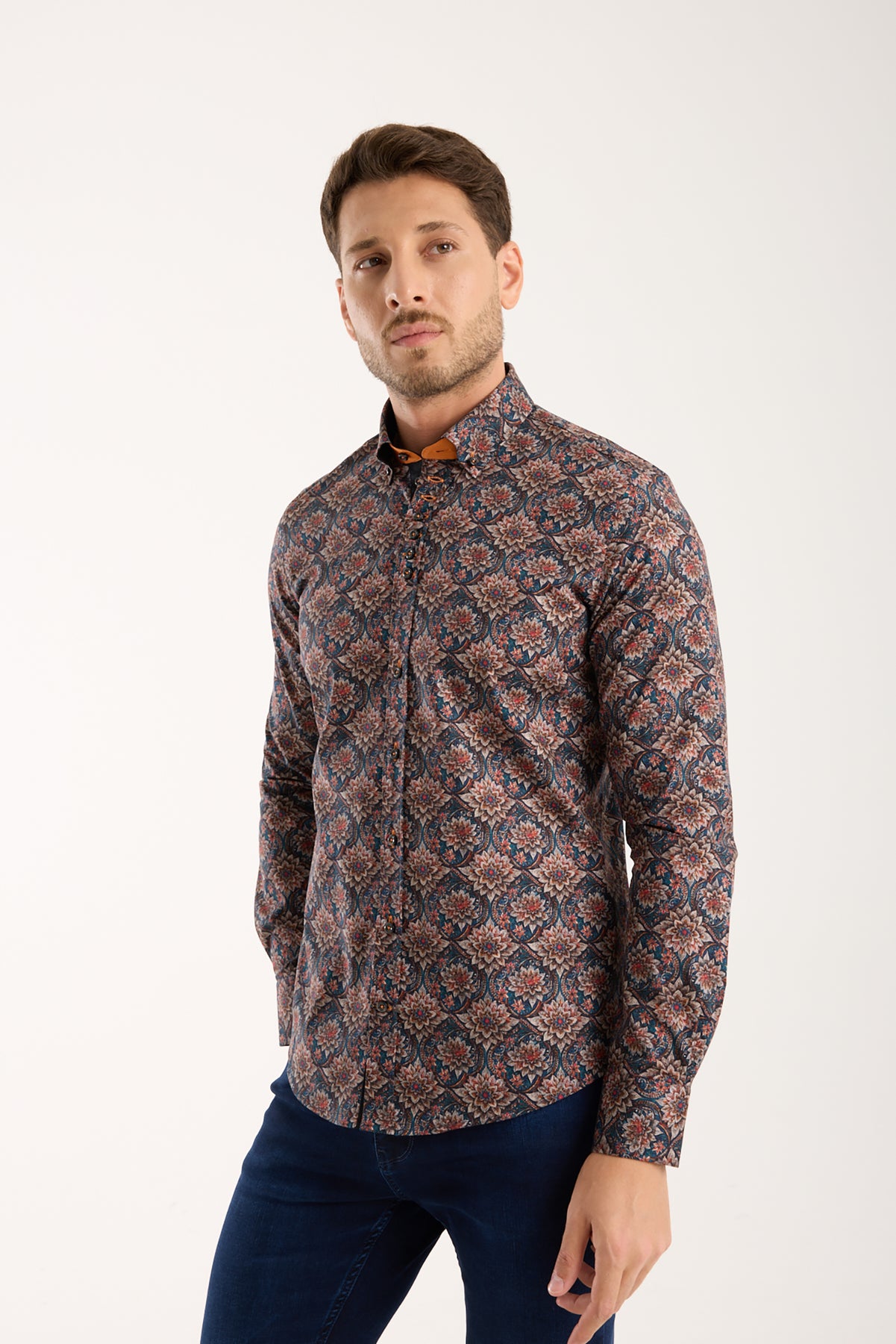 Športno elegantna srajca, ki že na prvi pogled izžareva karakter in stil. Izdelana iz kakovostnega bombaža z dodatkom elastana se popolno prilega telesu in omogoča udobje skozi ves dan. Slim fit kroj poudari postavo, hkrati pa ohrani sproščen videz.